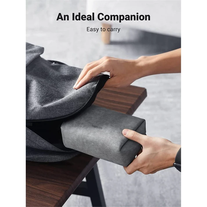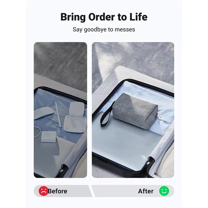 A pesar de su tamaño compacto, este organizador ofrece una gran capacidad interna, permitiéndote guardar cables USB, cargadores, power banks, memorias, audífonos, adaptadores y más. Su diseño liviano y su práctica correa de mano lo convierten en el compañero ideal para viajes, oficina o uso diario.